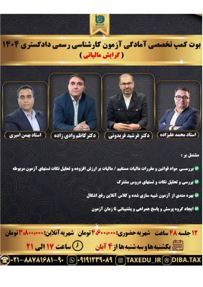 بوت کمپ تخصصی مالیات ویژه آمادگی برای آزمون های : جامعه حسابدار رسمی/ مشاوران رسمی مالیاتی