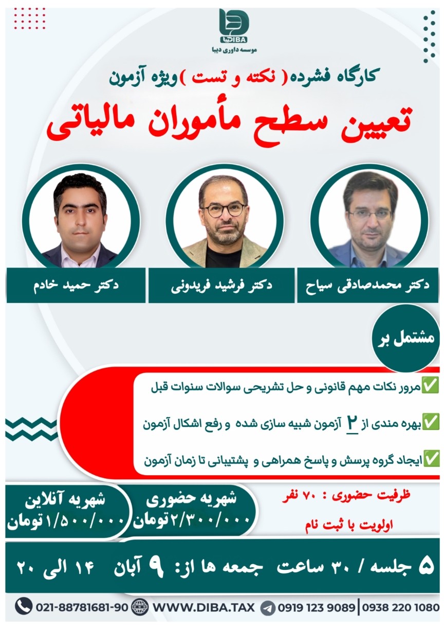 کارگاه فشرده نکته و تست ویژه آزمون « تعیین سطح ماموران مالیاتی »